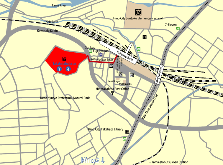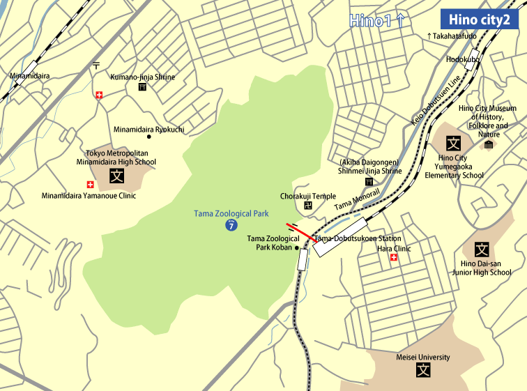 - 1-min walk from Keio Line/Tama Monorail Tama Dobutsu Koen Station ("Tama Dobutsu Koen" means "Tama Zoological Park".)