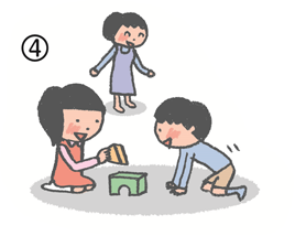 三歳頃、言葉が話せるようになり、徐々に文法に沿ったおしゃべりを始めると、愛着の対象に“見守られ”ながら、少し離れるようになり、家族以外の人とも会話ができるようになります。